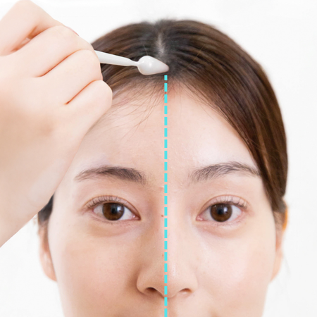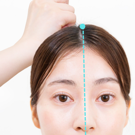 位置: 前髪の生え際の正中線上から、少し(指の幅半分ほど)上がったところ。